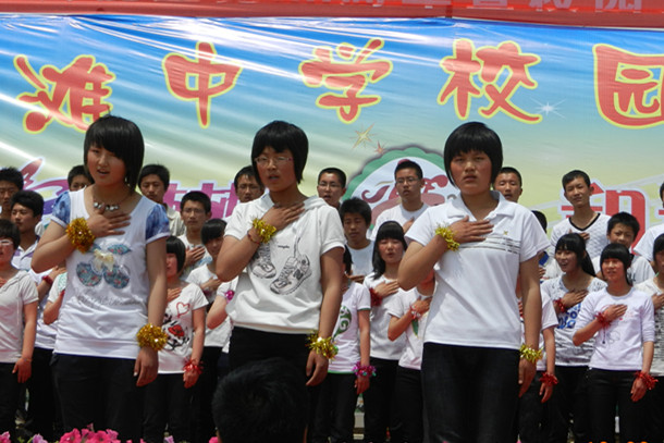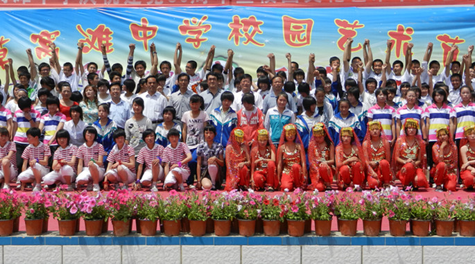 时间一分一秒流过,我的心也随着紧张起来,这是因为接下来就轮到我们班全体女生表演的舞衣快板《莘莘学子心,群众路线行》,身为女生中的一员,在台上,我的心提在了嗓子眼上,终于结束了,我的心也放松了些,台下掌声响起,这表明我们的表演也很成功。再精彩的节目也会终结,就好像我们进入校园也终有一天会离开。这一天,九年级同学放假准备中考,校园里就好像空荡荡的,但是九年级的同学离去,代表七年级的小同学又会来到。让我们祝福九年级的同学:"一路走好"
