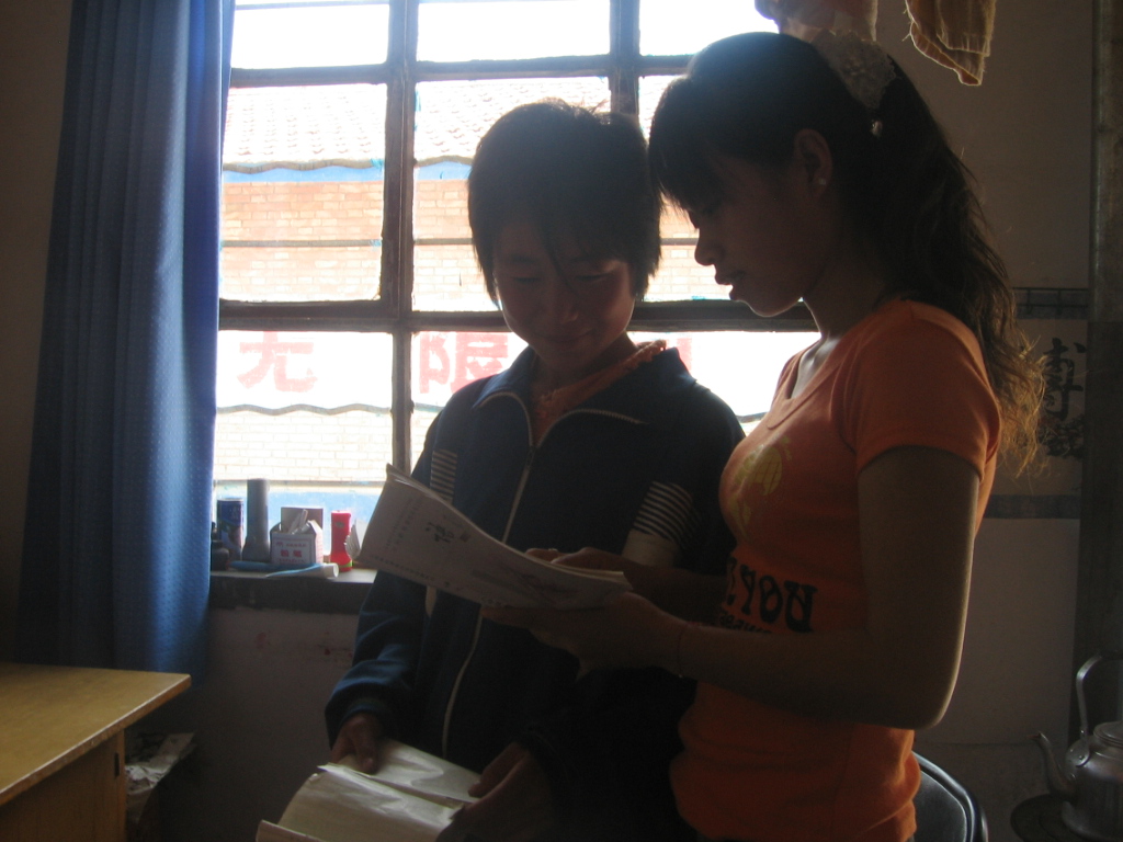 她长的很漂亮,眼睛又大又圆,我发现老师的目光时刻的激励着我、关心着我。她也时常帮我辅导功课。