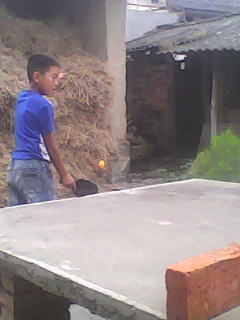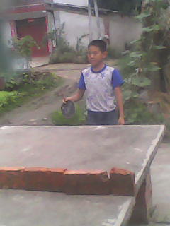 刚好我们家门前有一副用破旧的水泥板支起来的乒乓案,于是我找了一副乒乓拍子就让表哥教我打乒乓球。