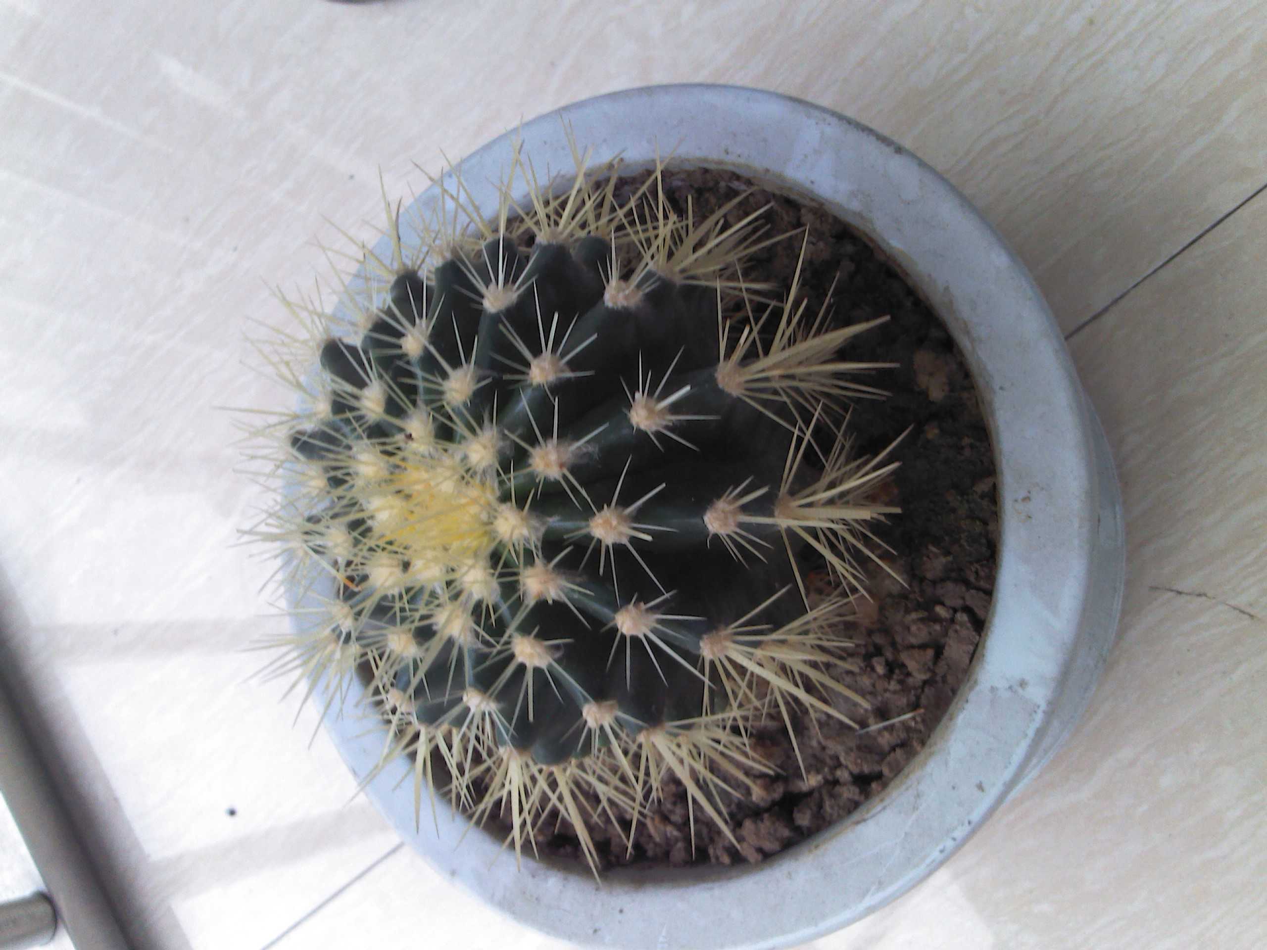 这盆仙人球个头不大,全身长满了刺,它很好看,但又让人很怕,一不小心碰到它的刺上,或许就被刺了一个眼,说不定还会流血呢,我想这就是仙人球对自己最好的保护吧。