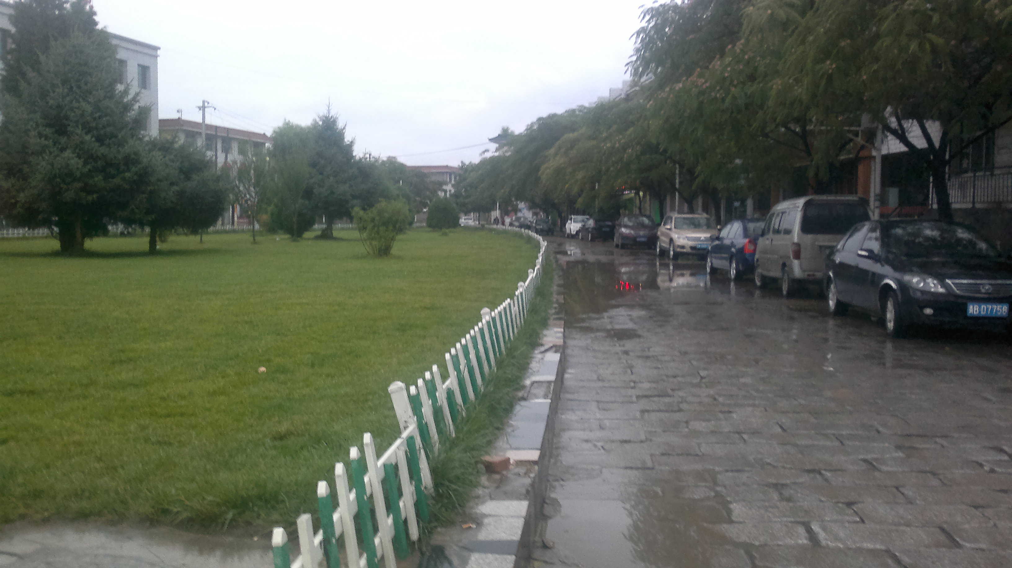 今天我又到了那个地方。下了雨,天阴阴的。地上还积了不少水。不过雨后的空气真的是格外清新。我陶醉在其中。