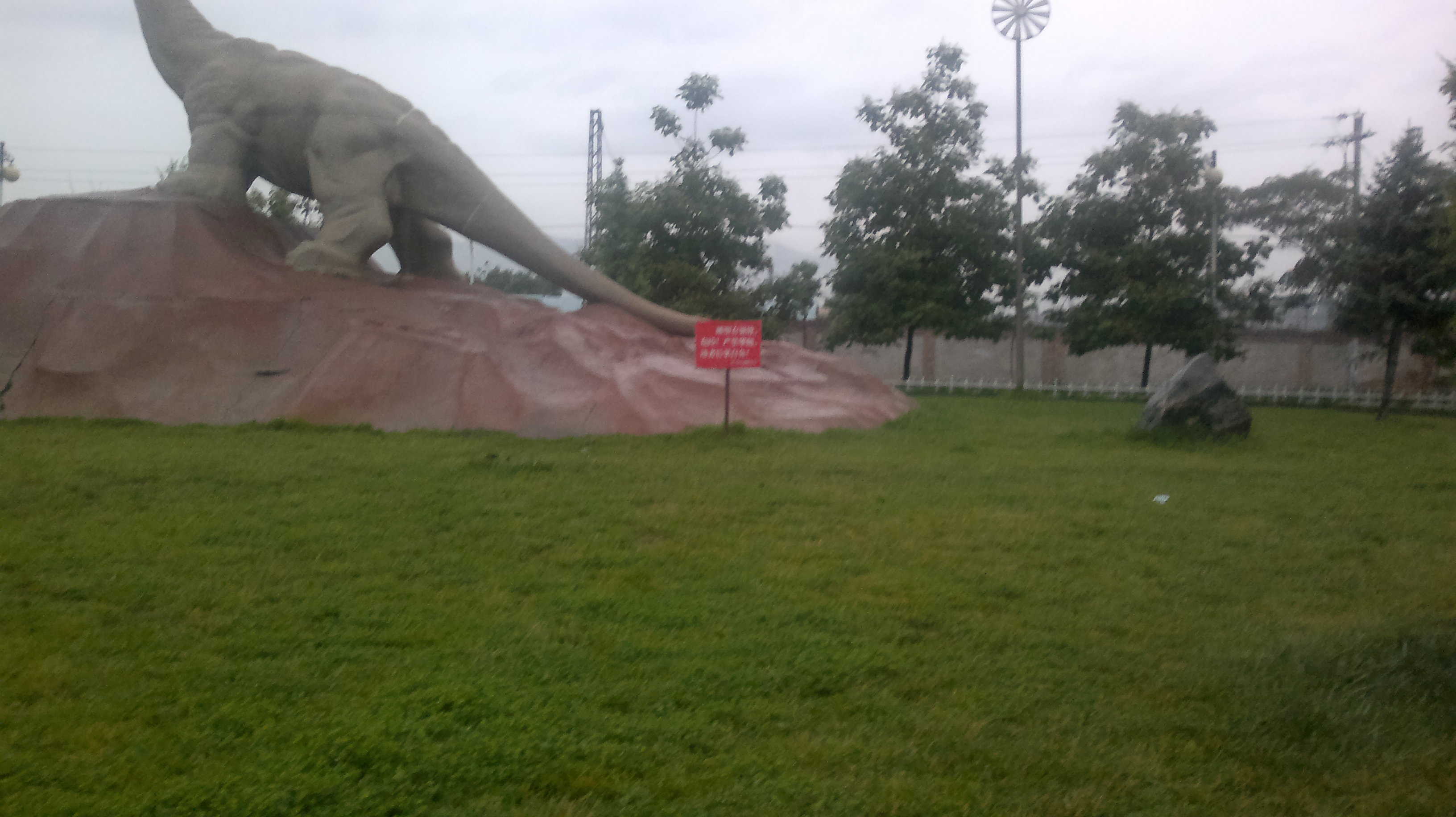 到了,到了。远远地就看见那马门溪龙耀武扬威,仰天长啸,使人不禁对它产生了一丝惊异的感觉。正值夏天,偌大的草坪一片绿色,让人赏心悦目。