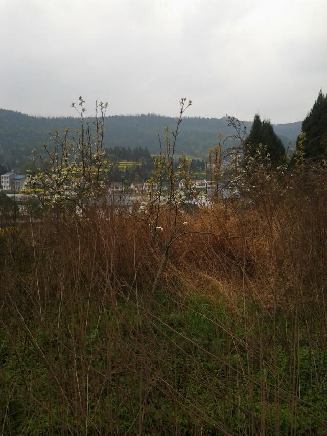 近处的梨花开得是那么艳丽,白色的一片片,似云似雾!远处的房屋镶嵌在大地绿色山河之间!房屋背后的油菜花黄灿灿的!一样的美不胜收。