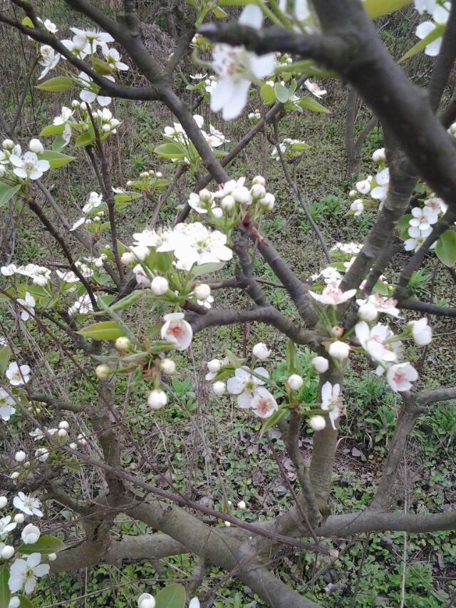 春天来了!万物复苏的时候!桃花开了!梨花也开了!油菜花也跟着桃花梨花的步伐!争芳斗艳!半开的梨花还是那么迷人。