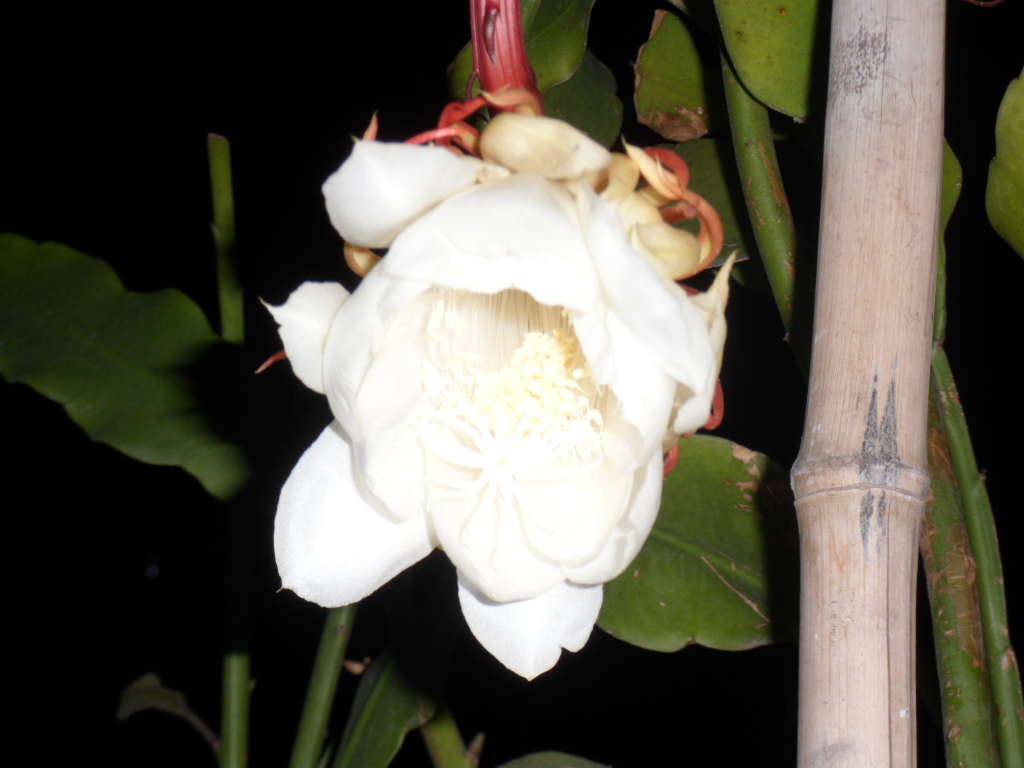 等了一个半个小时后,花瓣又开展了一些,露出了洁白的花蕊。我等的心急如焚,嘴里不停的念叨着:昙花快开,昙花快开。可是昙花好像没有听到我的碎念声,依旧像睡着了一样。