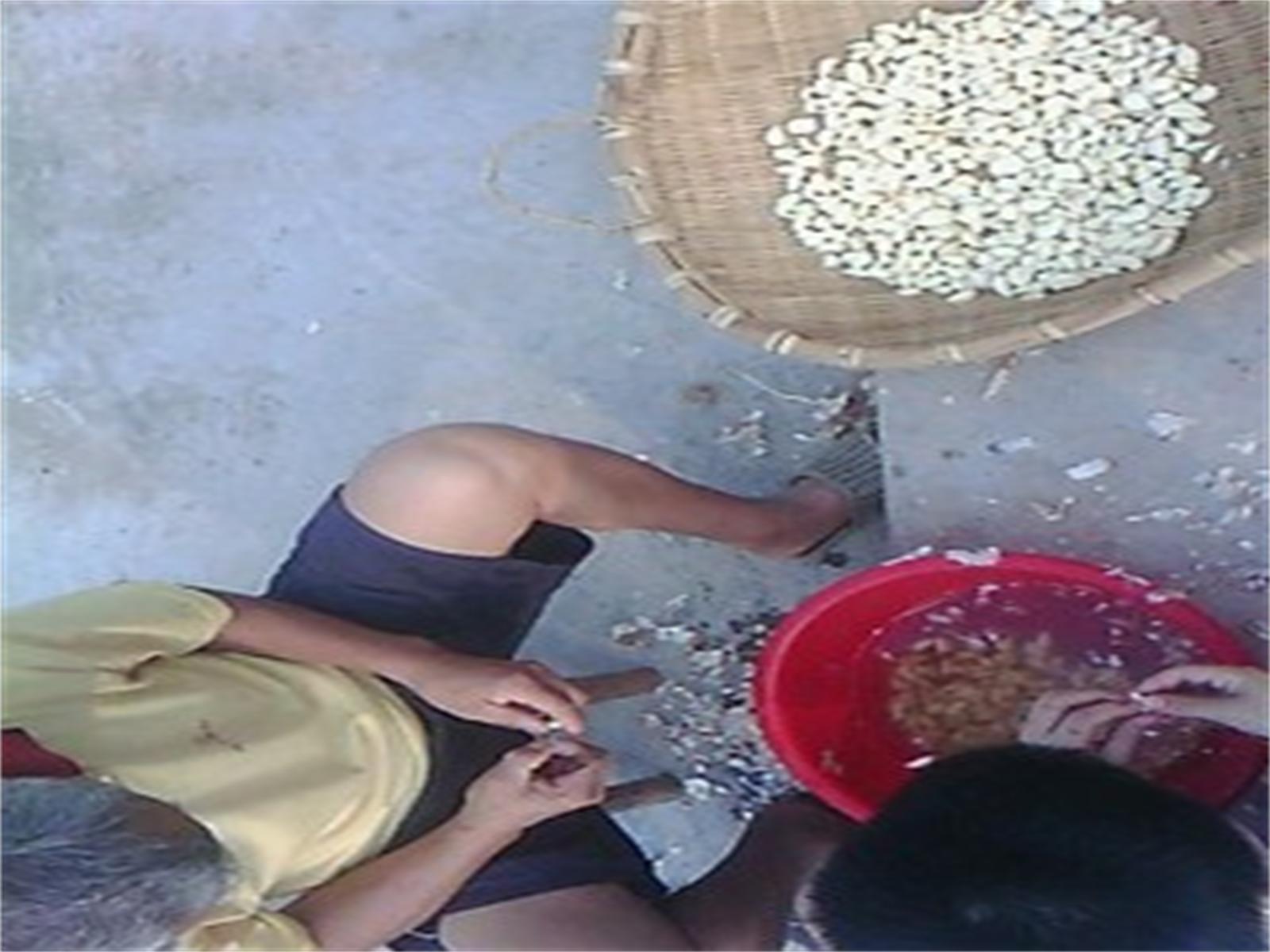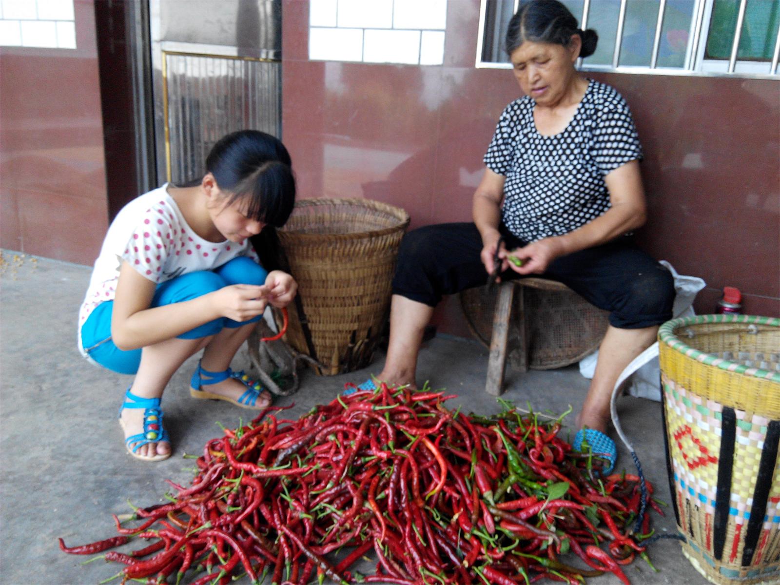 在那一段时间里我们就把红辣椒和蒜瓣弄好,奶奶和我把红辣椒的柄剪掉,表弟和爷爷把蒜瓣剥好。然后爷爷就把剪好的红辣椒和剥好的蒜用机器打成酱。