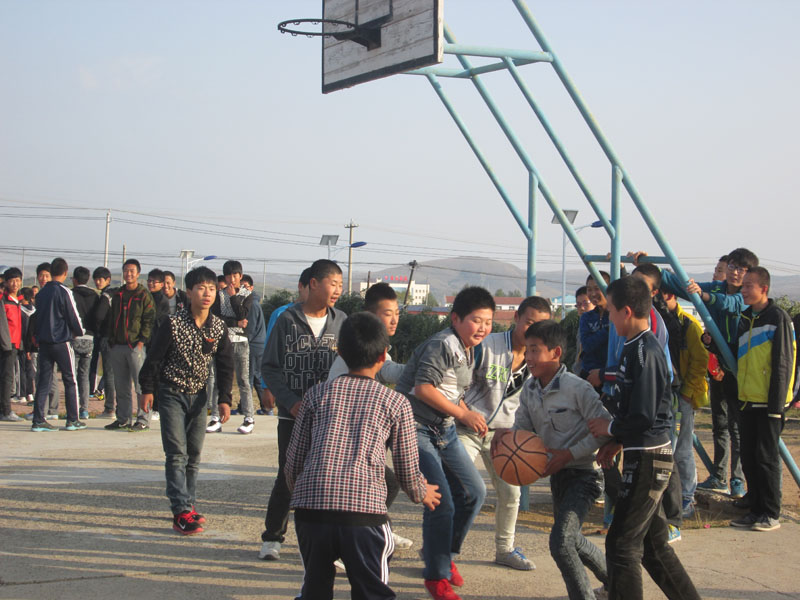 每到课外活动时,这里就成了学生们的乐园。有的在这里跳长绳,有的在篮球场打球的,不还有在足球场踢足球的。在篮球场的南面还有很多乒乓球案子,在这里打乒乓球的人也是很多的。
