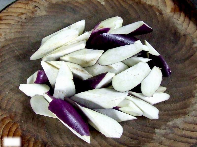 爸爸给我讲完这些的时候茄子也洗干净了,我再拿出葱,蒜,西红柿放在一边。然后,爸爸教我把茄子切成花状,我拿起菜刀,按照爸爸教给我的方法开始切起来。茄子切好以后,再把葱,蒜,西红柿也切成薄片。