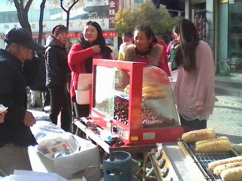 转换了一个新的环境,熟悉一下新的环境也是理所当然的,而我熟悉的第一对象就是步行街,这里是一个很受欢迎的地方,每次到周末,这里是非常热闹的,这里摆放着许多的摊位,而刚进入步行街时,就看到了,卖老北京糖葫芦的,各种各样的,非常诱人,还有热气腾腾的烤玉米。