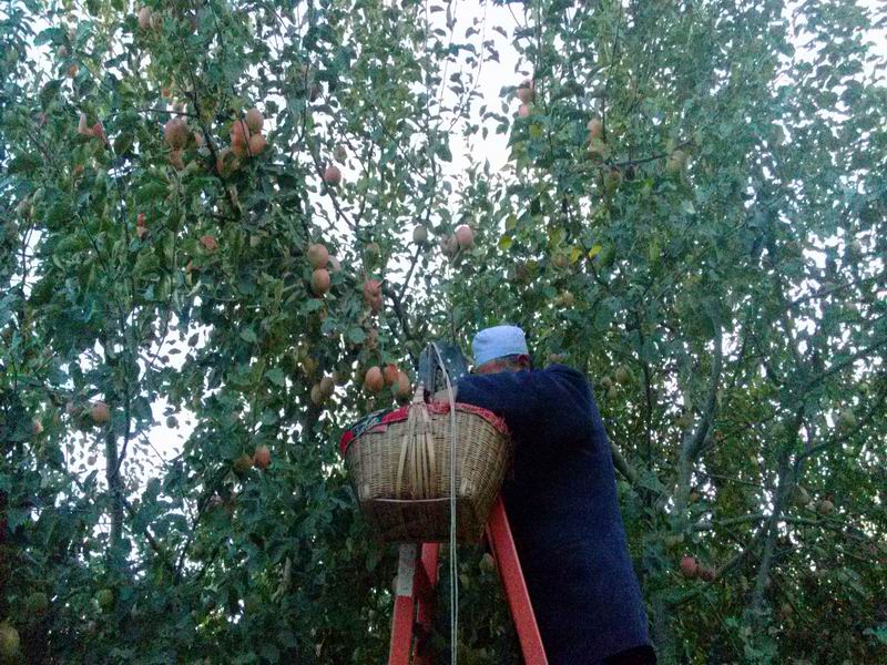 一个个红彤彤的苹果展现出自己丰满的一面,让人不得不去拿起它吃一口,给人带来一种味觉上的体验,这一天的辛苦终于等来了回报,苹果的丰收告别了金色的秋天,迎来了寒冷的冬天。