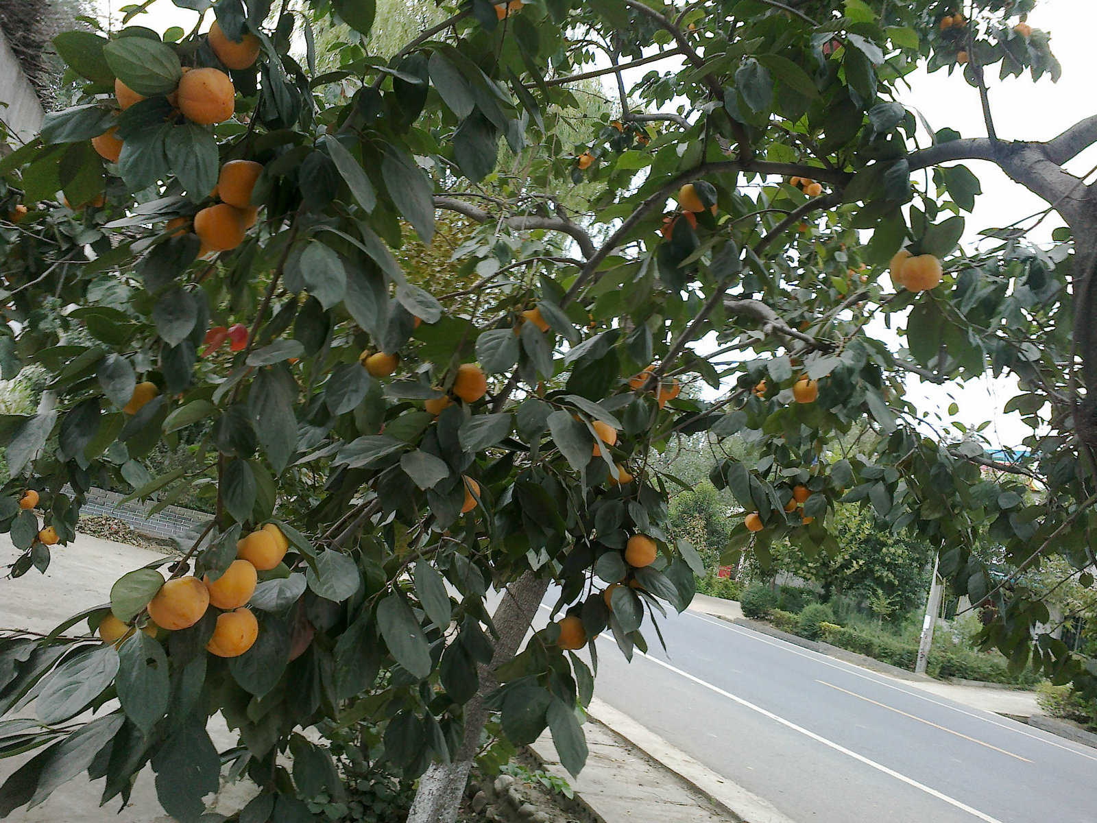 深秋时节,门前的柿子树挂了一树的灯笼。又大又红,真的是既好看,又好吃。我是挺喜欢吃柿子的,尤其是柿饼。