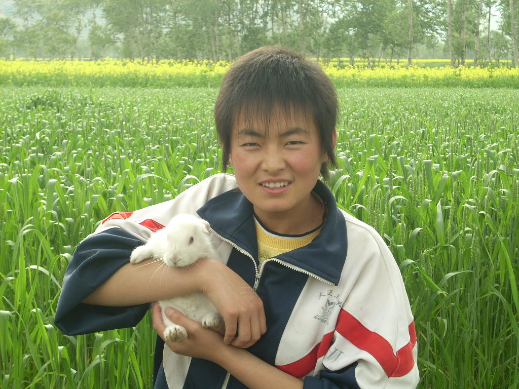 今天,我又发现隔壁男孩养了一只猫和一对黑白兔,我拿相机去拍几张相片,这只猫向我展示了一项技能,身子一跃,跳到了树上,足有两米高,真让我惊讶!我想抱着它拍一张图片,可它一点也不配合,竟抓了我一下,我只好和小白兔拍了一张。我发现,在和小动物一起真快乐,我决定要自己养一只小猫。