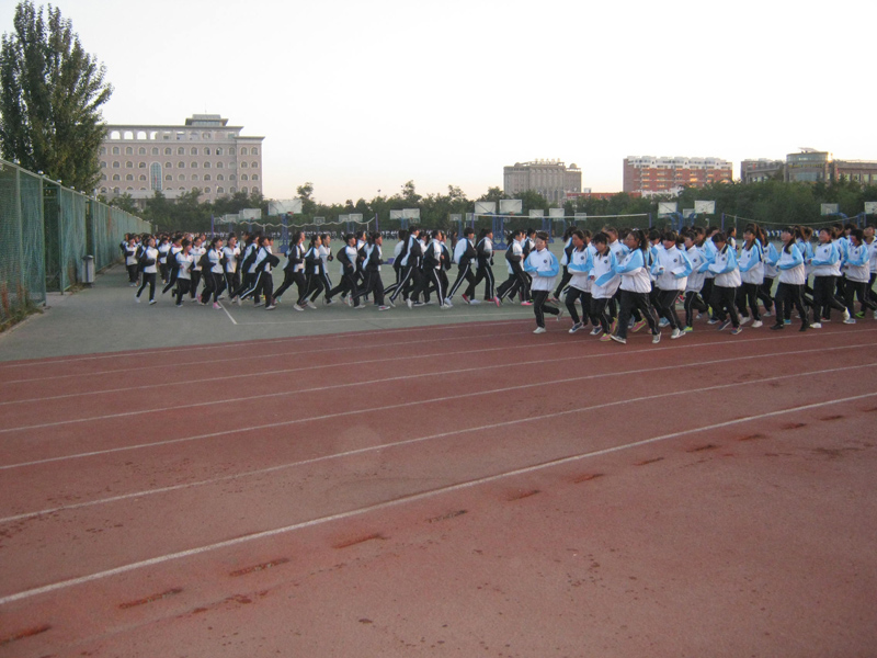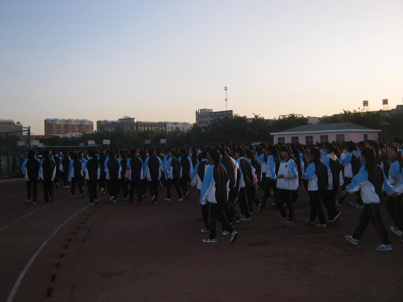 同学们跑完了,解散了,都荆条有序的往出走,出了操场,他们的下一个目标是餐厅,嘿嘿!
