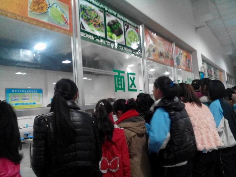 吃麻辣烫,拉面,御米面都有卡,卡上都有号,买饭时就用那个卡,但是吃米饭时没有卡,学生们都会主动去排队,不会去推,端拉面时后面的人都会让开,让端饭的人出来。