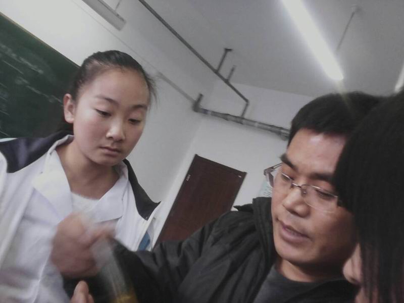 老师演习完过后,同学们都亲自动手开始实践,先拿出试管取出药品,然后滴入药液震摇,在一步一步按照老师所讲的步骤认真的做着,最后细心地观察着实验反应。耐心的等待自己的劳动成果能够得到证实。