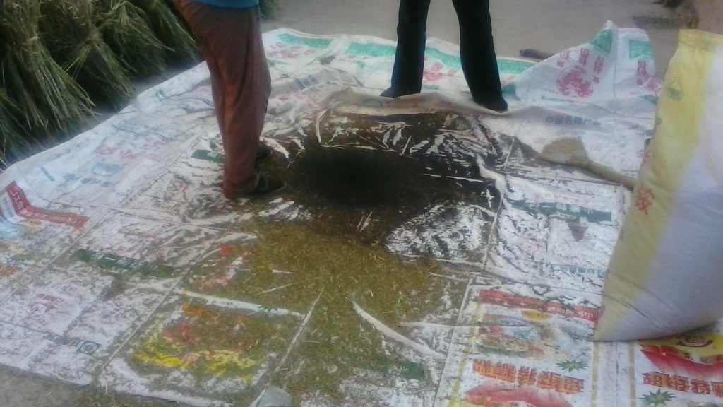 然后我就在一旁观看这个有趣的事情,油籽打下来后,看起来颗颗饱满圆滑,榨出来的油有肯定会很好吃的,爷爷和奶奶将有残渣和碎粒的油籽筛去,反复数次,油籽就变的干净了,然后装进纤维袋中,等待榨油了!