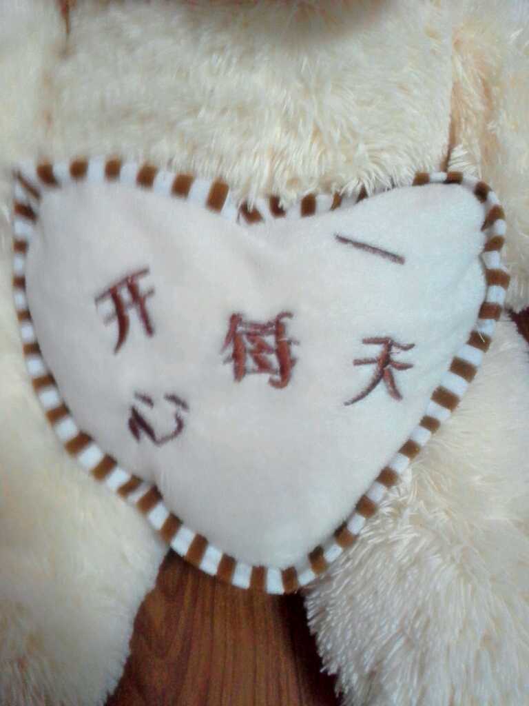 在我伤心时,它是我最忠诚的倾听者。说完后我总会看见小熊抱在怀里的字,它在安慰我,也在鼓励我:“开心每一天!”看着看着我又破涕为笑。