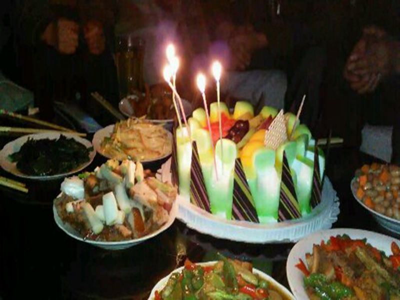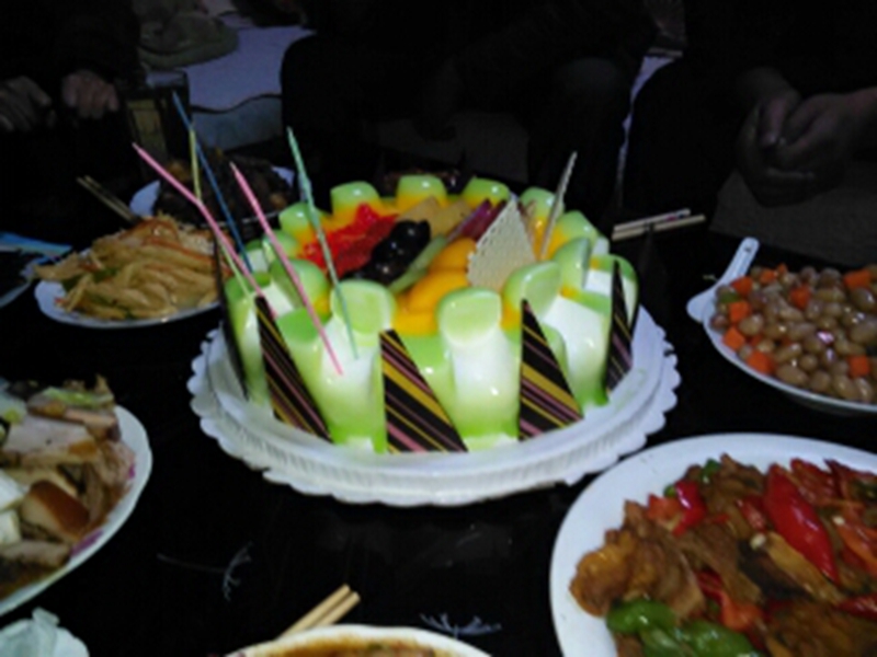 急慌慌的回到家就看到柜台上放着一个大大的蛋糕,这让我看了既惊喜有有点悲伤;喜是我可以享受这美味的蛋糕,一想到就口水往下流,悲是我得生日好像没有这么隆重过。看看家里人忙前忙后的,我也只能先把功课做了。