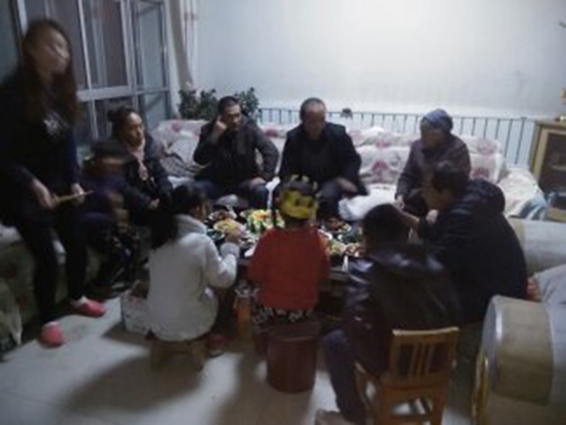 “吱~”门开了,我出去一看原来是爸爸、叔叔和姑姑来了,我赶紧请进来。把奶奶也从房间里叫出来。我告诉妈妈人到齐了可以开饭了。说时迟那时快我三下五除二就餐桌上摆满了饭菜。最后请上压轴美味——蛋糕。