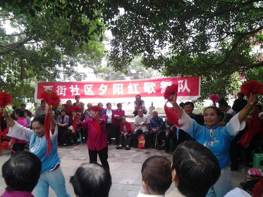 西街社区夕阳红歌舞队的表演!看见那些婆婆精神焕发的在那跳着她们独特的舞蹈!感觉就像没有岁月的痕迹一般!岁月在他们的面前又算得了什么呢!不禁地感慨好一些厉害的老婆婆啊!