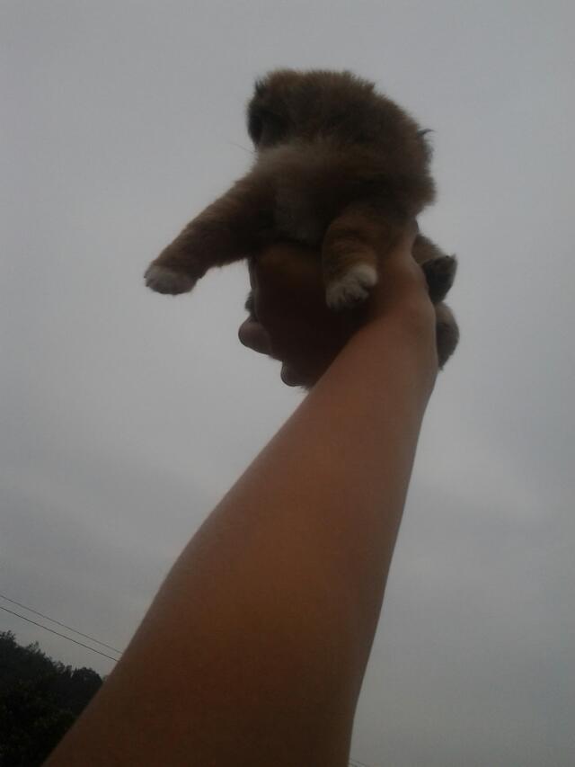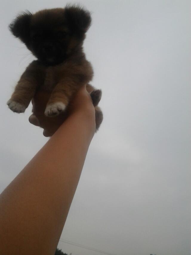 他很小!当然也很可爱!每次去逛路!走着走着就不走了!在地下发出"嘤嘤"的声音!让人怜惜!所以无赖之下只有抱着它一起走!我一只手便能举起他!