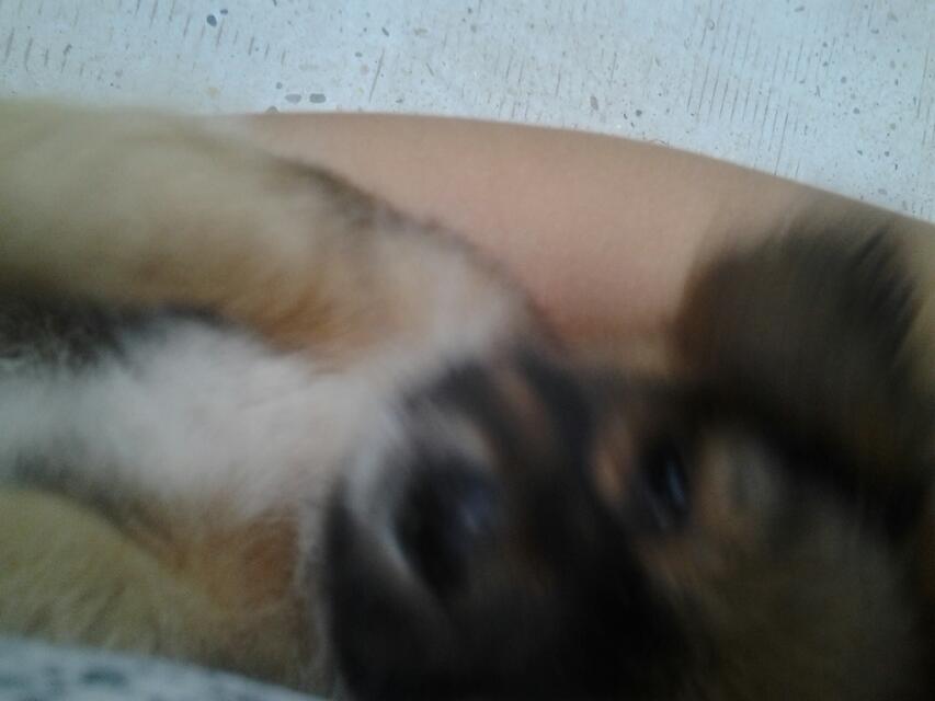 我家欢欢快入睡的样子!怎么摇它它都不醒!我的怀抱太温暖了!以至于到家后欢欢才从睡梦中惺忪地睁开了双眼!迷迷糊糊地去找它的哥哥(仔仔)我家还有一只小狗叫仔仔。