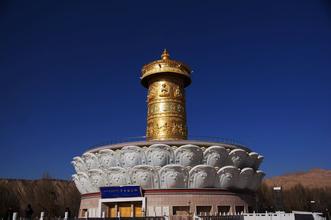 每逢周末,许多教徒和游客都来这里旅游观光。巨大的底座,像一个完全盛开的莲花。入口上方巨大的蓝色牌匾上,用藏语、汉语两种语言书写着“中华转经轮”以及题词者的名字。而且,门票也不是大多数人忧虑的事。每次参观总是有大量的僧人朝拜,祈祷。