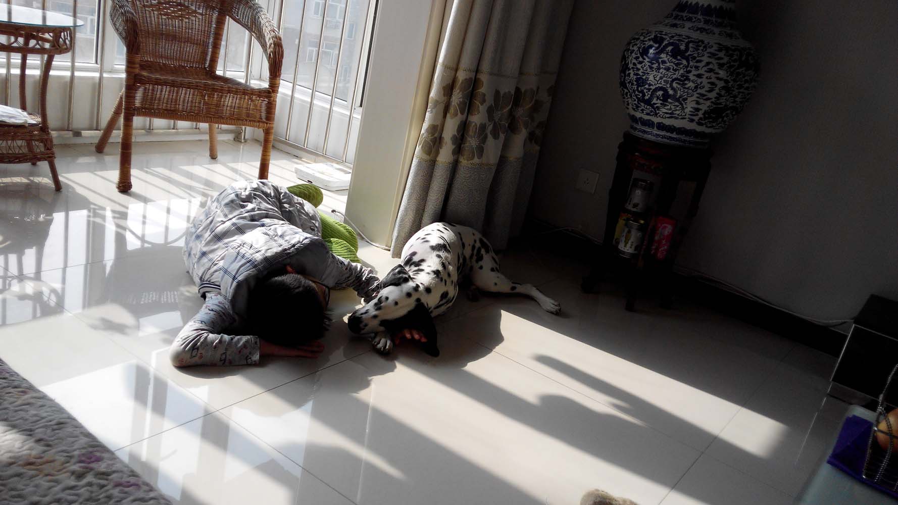 从照片上看到我们和小狗是多么的和谐友好。海盗虽然是动物,但是人类和动物的和谐相处从照片上可以看得出。