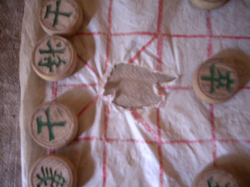 听大人们说,这个小铺子,在我没出世时就已经开了,时间长了,便小有名气了。店主为了吸引更多的顾客,便设了象棋摊。一张不大的破方桌,桌面是几块破木板拼成的,早已裂开了缝,虽说它是“四肢健全”,但还是咯吱咯吱的响。桌子上面摆着棋子, 咦,怎么少了“炮”?别急,桌子下面有许多废棋子,随手一拿就充当“炮”了。