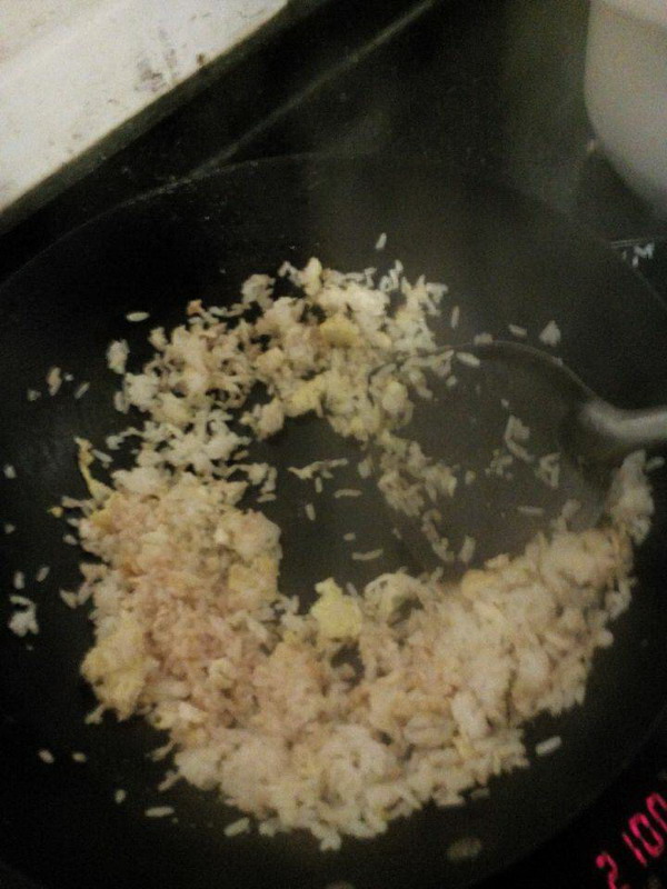 我先在锅里放上油,等油开的时候,我将调好的鸡蛋倒进去,用锅铲抄均匀,然后撒上一些盐,把饭放进去,让它和蛋和到一起,把葱花倒入,用锅铲抄,再放一点酱油,等到饭是黄色的时候,我就把它装进碗了!