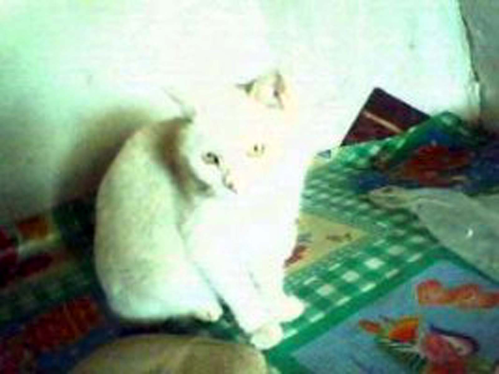 它的全身都是白色的,没有一根黑色的毛,如雪一样洁白。小巧玲珑的眼睛好像小灯泡,早上是绿的,中午蓝色的,下午是黄色的。脚下还有一副梅花形的肉垫,所以走起路来很轻,一点声音都没有。两只耳朵警觉的竖起来,尾巴一摇一晃的,不知道它是在表示友好还是不友好。