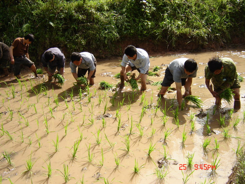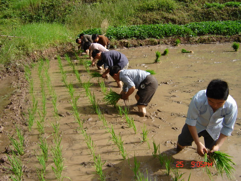 第二天早上起来,发现我们家的秧田站满了人,原来乡政府的人来帮忙我们家栽秧来了。