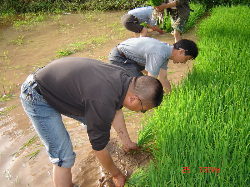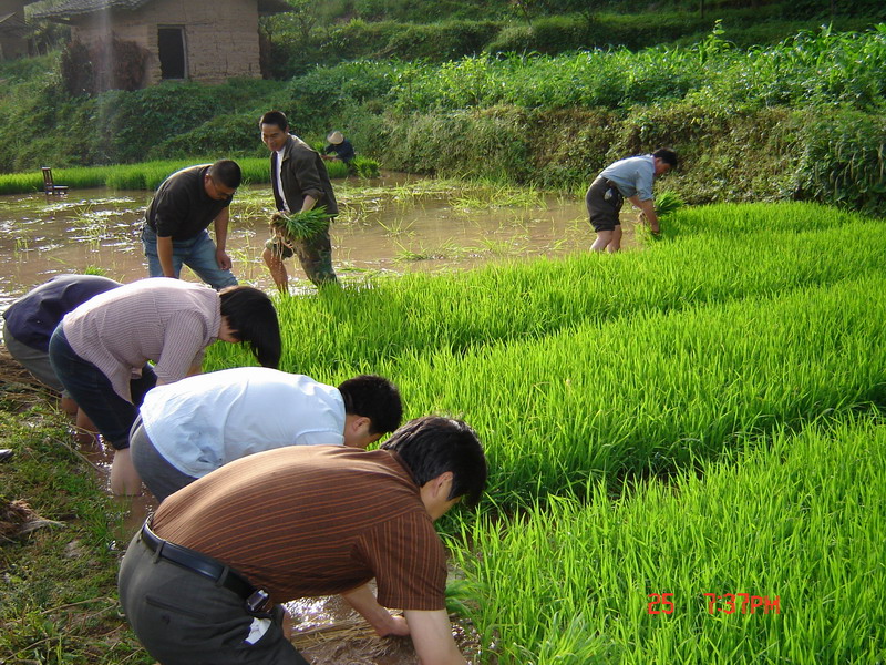 经过几个小时的奋斗,这块田终于栽好了。政府的叔叔们又转到其它的田里去了。我们叫他们去家里歇一歇,可他们怎么都不肯,他们说,现在农村劳动力都到外打工了,已经六月份了,再不栽上秧,等到了收获的季节,农民可就没收成了。