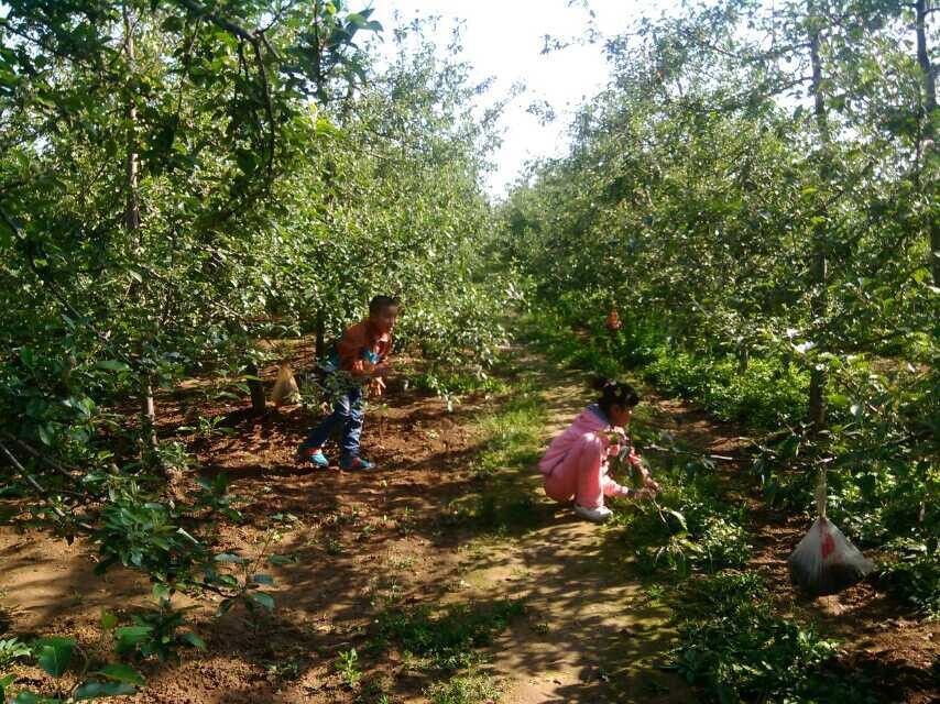 茶余饭饱后,奶奶去苹果园锄草,我和弟弟也去了