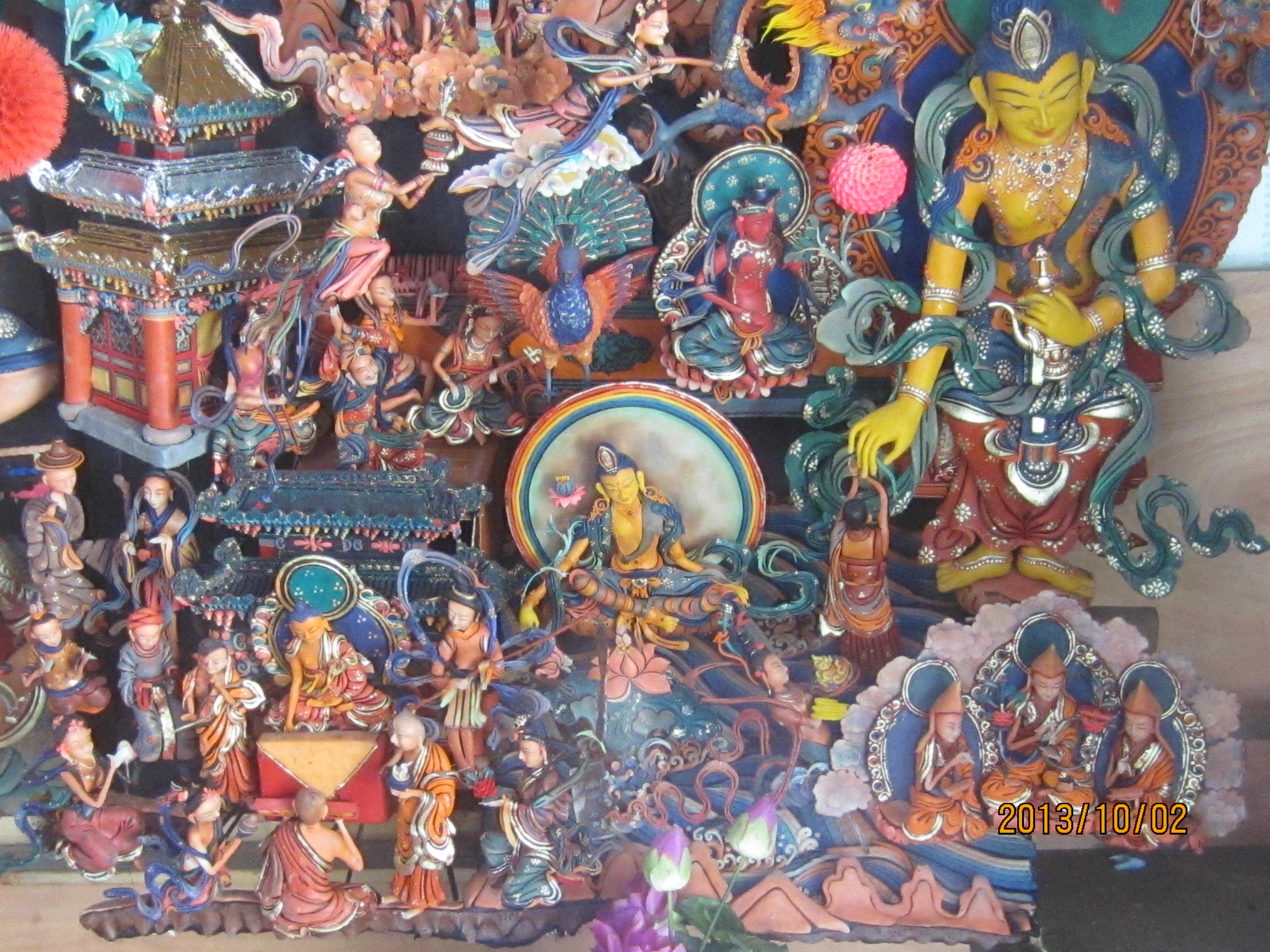 三绝的确名不虚传,堆绣的活佛眼睛是用黑玛瑙做的,手指甲是玉的,所以这里的每一幅堆绣都价值连城的宝贝。每一个塔或寺里面都有壁画,每一幅都很神奇。