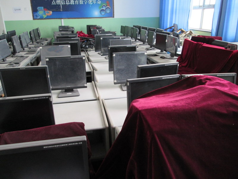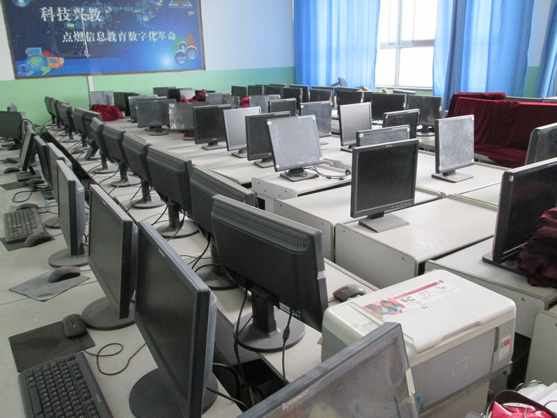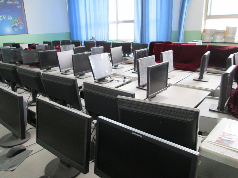 我们的计算机老师告诉我们,由于中学教学楼拆了以后,中学机房的电脑全部搬到小学机房,占满了整个房间,所以机房再没有办法用了。
