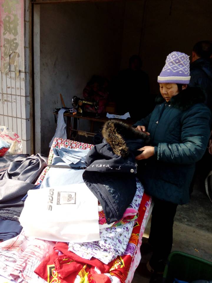 要是农村大媳妇老太婆要做个什么围裙、包帕、袖套、罩衣之类的常用品,只要你赶场来时对他说了,走时定能拿到货。因为他心灵手巧,态度又平易近人,所以别看他这么一不起眼的小摊,很多时候也门庭若市。