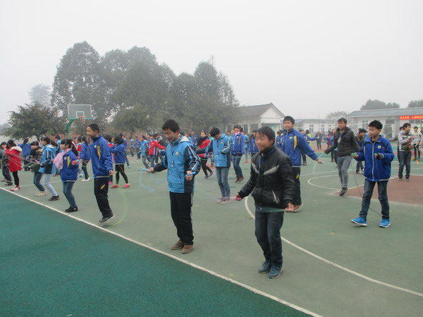 做完操后,大课间的第二项就是跳绳,随着音乐的想起,同学们纷纷拿出自己的绳跳起来。通过七分钟的跳绳子,把同学们累得气喘吁吁,你千万不要认为这就结束了,跳完了一首还有一首呢。随着每二首音乐《小苹果》的响起,同学们跳的节奏明显比以前慢了许多,因为实在太累了,好不容易熬到最后一项,更是让同学们心惊胆战,那就是长跑,体力本来就不支的我们,还是拖着疲惫不堪的身子跑完了5圈1000米,男生1200米。同学们嘴里同时发出了这样的声音,终于结束了,累死我了。