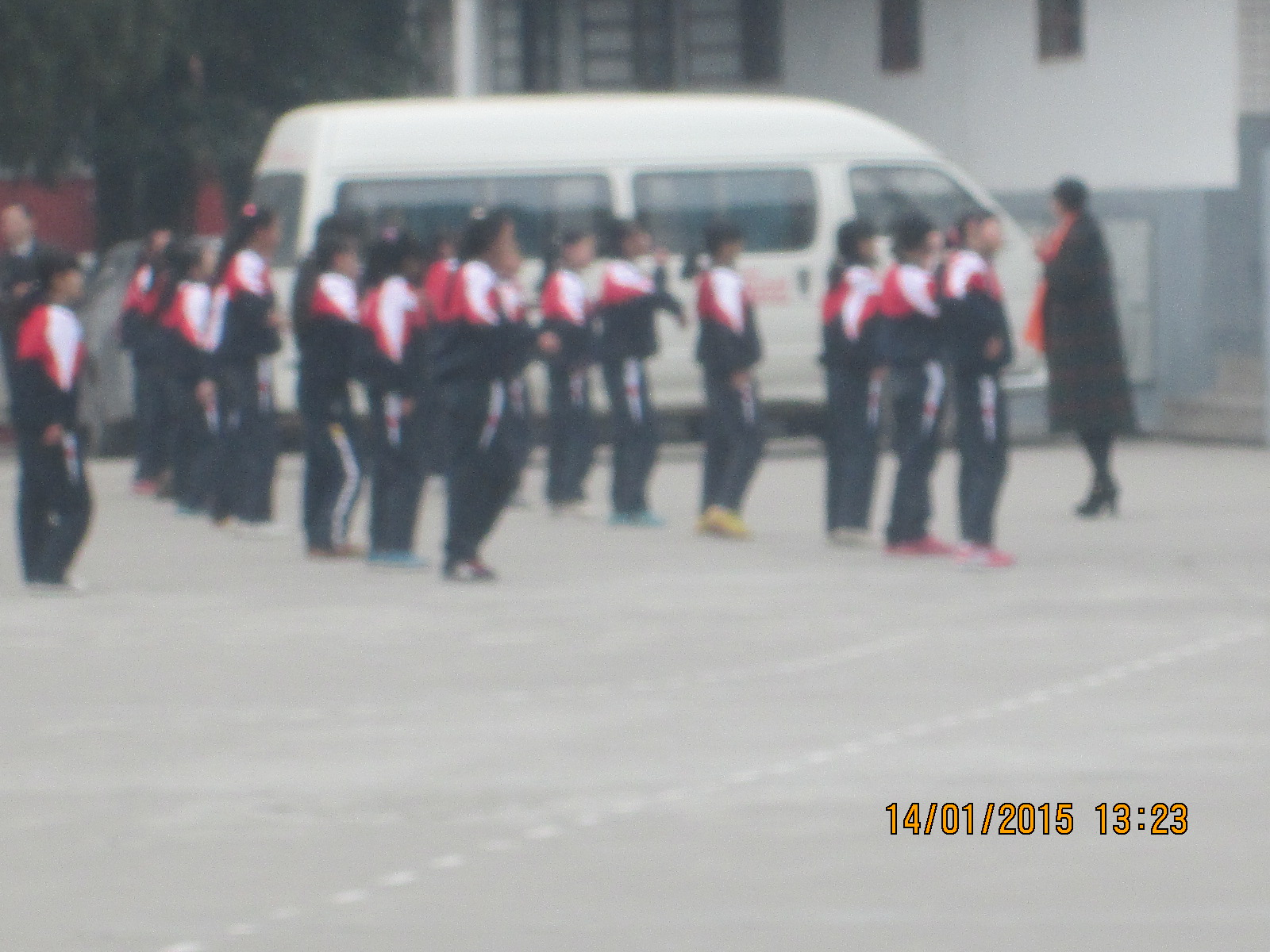 篮球队的同学们经过一段时间的训练,技艺也大有长进。他们正在老师的指导下训练投篮呢。