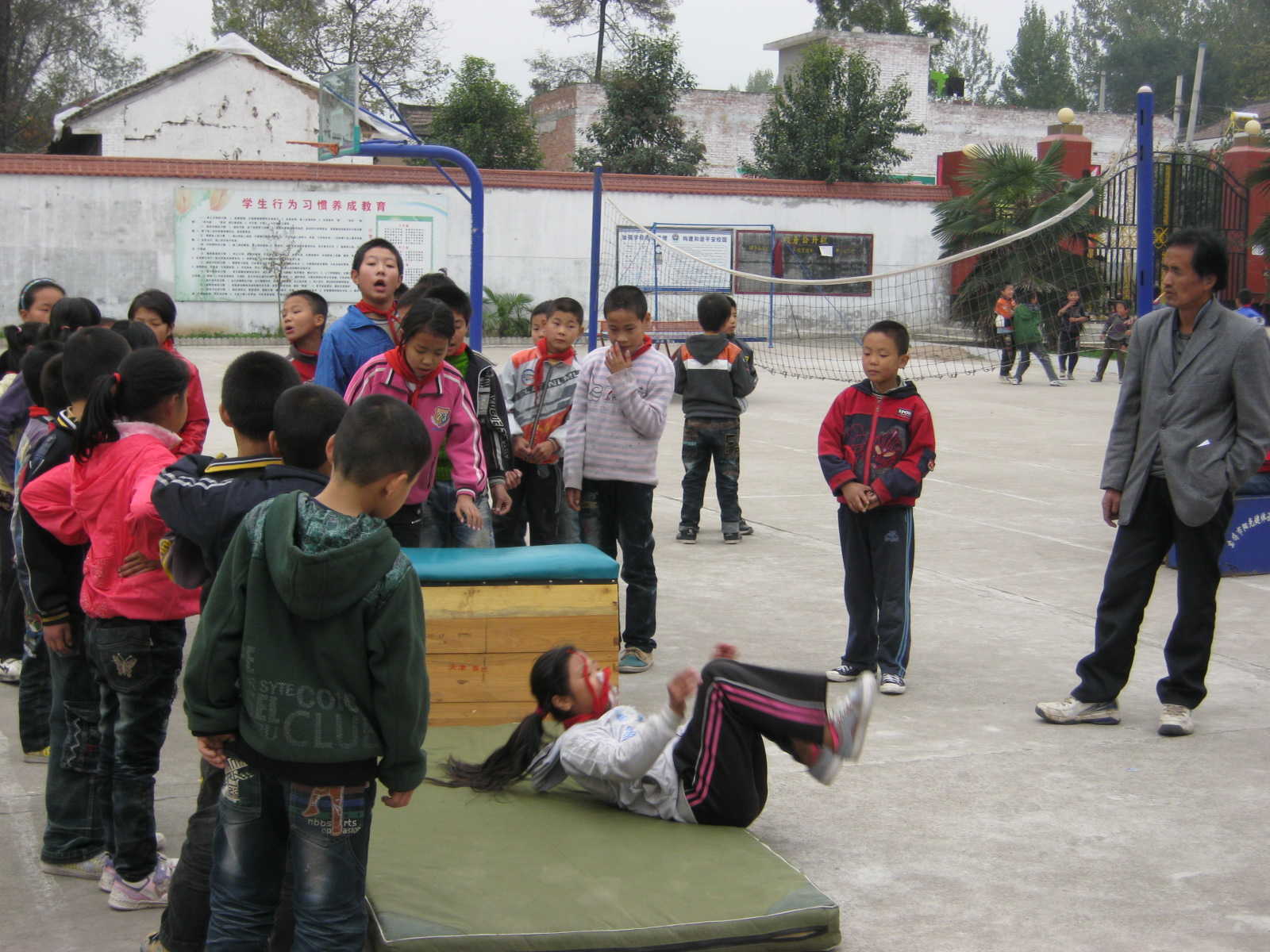 今天下午有我们班的体育课。平常我们都是走步、跑步,做操为主。今天有新的活动内容,体育老师抬出了木箱和垫子,可能是天气冷的缘故吧。我们先做了些热身运动,然后就由老师组织,准备做“跳箱前滚翻”的动作。