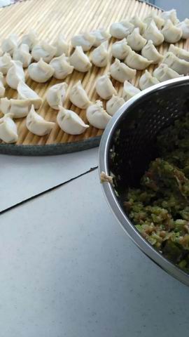 很快一盘热气腾腾的饺子端上了桌,屋里顿时就飘荡着一股诱人的清香,似乎感觉口水马上就要“飞流直下三千尺”了,当时在心里就想,立刻要将它全部吃光,饺子真是太美味了。