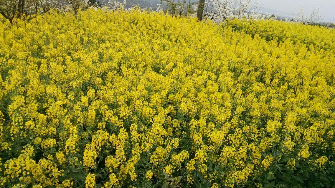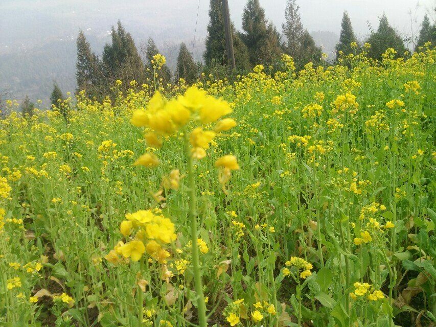 远远望去,整整齐齐的油菜田里,一簇簇身披金黄圣衣的"仙子"矗立在新中国妈妈的皮肤上为人们散发着芬芳,一阵微风吹过,花瓣飘落,仿佛裙角飞扬,和着山林深处悦耳的鸟叫声翩翩起舞,这才是真正的自然和谐之美啊!