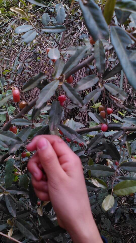 忽然走在稍微前面的我,看到一树稀有的玩意儿。只有半个小指头那么大的红彤彤的果实。可还记得,那曾是我们儿时的最爱,它长得很可爱,还可以品尝。最主要的是它非常讨孩子们的喜欢,当然包括我们那永远也长不大的童心。