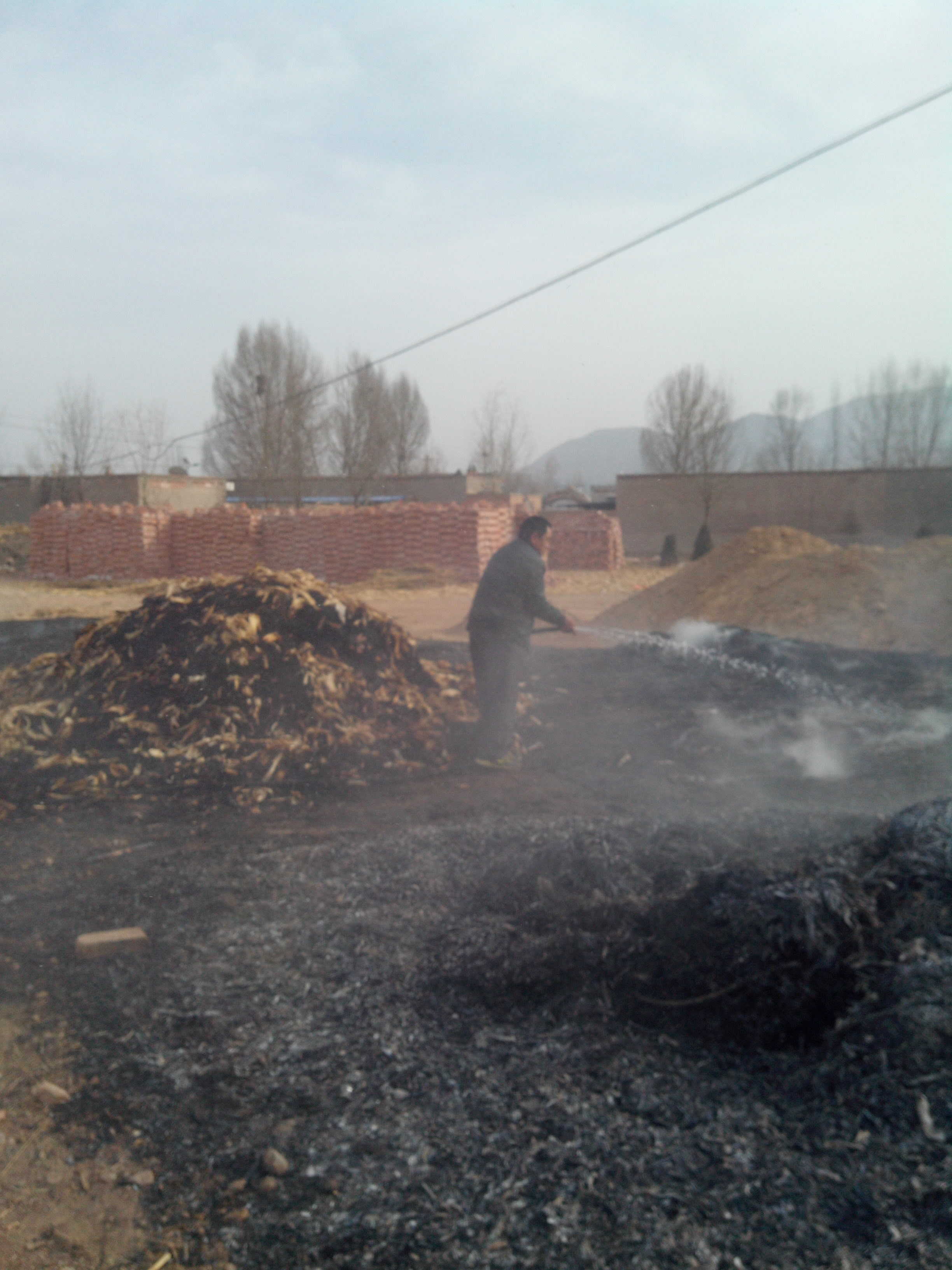 这场大火几乎将我家的草的上面都烧干净了,但是底下还是有很大一部分没有被烧着,所以,爸爸就联合全家所有可以动员的力量(我姨奶、姨爷、我的小舅舅)一起来灭火。