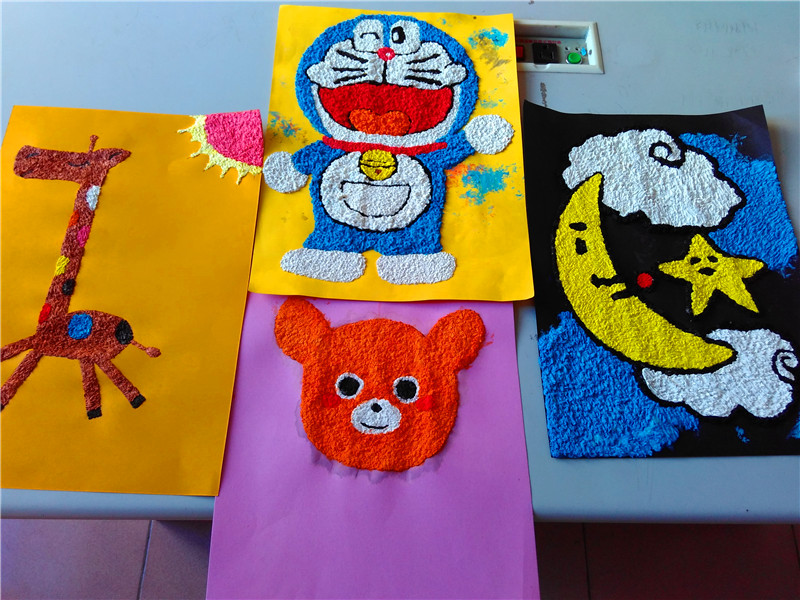 阳光明媚的日子上课越上越带劲儿,因为这门课是手工课,同学们都纷纷动手做起五彩缤纷的手工画。我的同桌也不例外,先选纸、然后再画模型,接着就得两人合作完成这些手工画,制作图画需要一些常用材料,比如:画笔、卫生纸、颜料、杯子、胶水、剪刀还有镊子和牙签,卫生纸是图画的主要材料,首先将卫生纸剪成碎渣,卫生纸必须剪的越细越好这样做出来的图画摸上去才不会刺手,由于卫生纸吸水过后体积就会缩小,所以得多剪一些卫生纸。