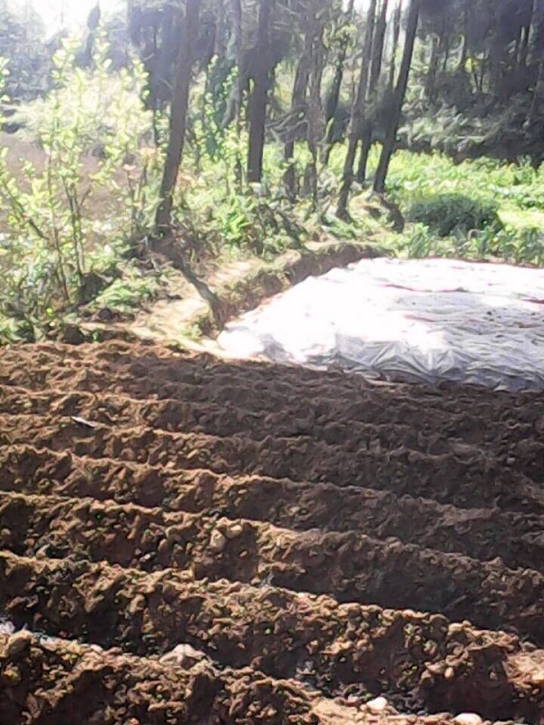 最后可别忘了给红薯浇灌粪水哟。万事俱备,就只等着来日红薯生根发芽吧。