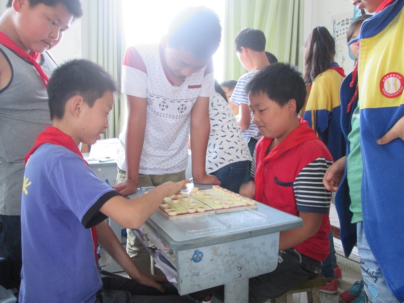 起初,我只是作为一个旁观者来看我们班那些“高手”下,有时候知道走什么,知道“吃”什么,但更多的时候不知道他们走棋的意图,于是我问他们:“为什么要走这步而不走那步?”他们也耐心地给我讲,我自己也琢磨。