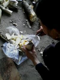 得来全不费功夫!虽然顶着烈日,来砍竹笋,却也是满载而归。看看我们的“劳动成果”,我俩都情不自禁的笑了。嫂子告诉我:“他们那边管这种竹笋叫“玉兰片”!它们不仅有清火养胃的功能,而且还能有效的治疗腹泻。”