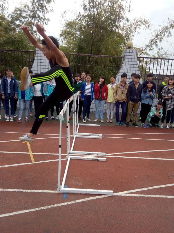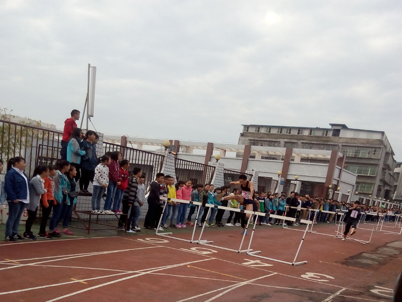 冲了一段路程之后就快是跨栏了,运动运们跳起来越过米栏,一个一个的向前冲。当然也不是全都冲得很顺利,有的会把米栏给碰倒,或者还有的不小心摔跤了,所以竞争是非常激烈的。虽然他们遇到了很多的意外,但他们还是坚持到底把它跑完了。