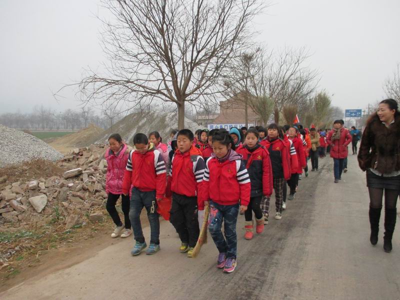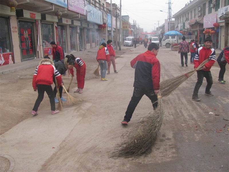 吃完早点,学校喇叭就通知我们带着笤帚、扫帚、簸箕等劳动工具在教学楼前集合。少先队大队辅导员王老师给我们进行了劳动任务布置、校外纪律要求和路途安全问题等讲话。
